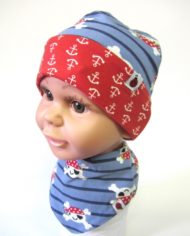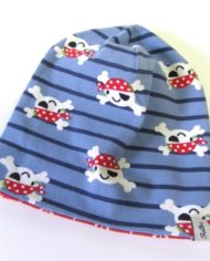 Wendemütze Gr. 1 Pirat blau. Wendeseite rot mit kleinen Ankern.