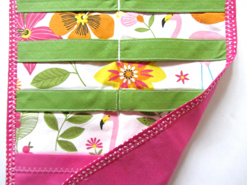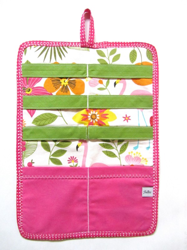 Zwei Halterungen sind für Haargummis, Ketterl – alles was eben „aufgefädelt“ gehört und ist mit dem Klettverschlüssen leicht zu öffnen