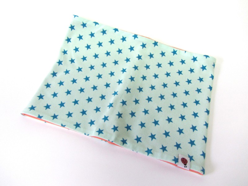 Sterne in türkis auf mint. Wendeseite koralle unifarben.